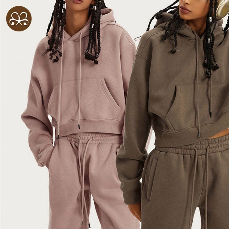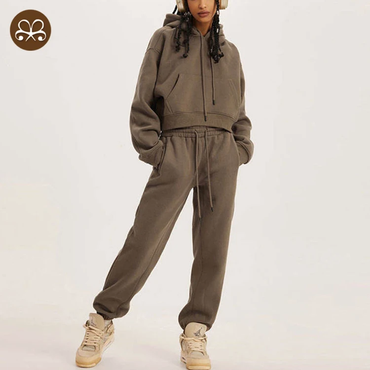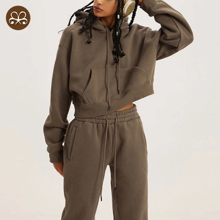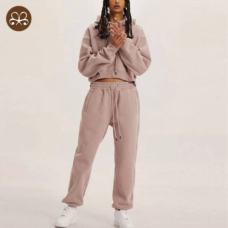 Women's 100% Cotton Lightweight Tracksuits Jogger Streetwear Blank Sports Set 2 Piece Sweatsuit Set for Women